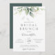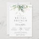 Belle invitation de brunch nuptiale avec des eucalyptus aquarelles et des feuilles d'or.