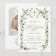 Invitation Eucalyptus Green White Frame Cross Baptême Photo