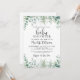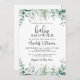 Simple Greenery Boho Baby Shower Invitation. Perfect for spring through autumn celebrations, this minimalist design features a clean white background on both the front and back for a fresh, timeless look. Soft watercolor eucalyptus leaves and delicate greenery frame the invitation along the top and bottom, adding a natural, airy feel that’s elegant, modern, and gender neutral.