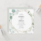 Le faire-part de mariage présente des feuilles d'eucalyptus verdoyants sur un cadre géométrique moderne. Touche délicate de calligraphie script.