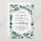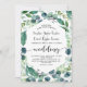 Design de carte unique et élégant avec cadre feuille d'eucalyptus aquarelle unique, une couronne ronde feuilleté sur le dos avec initiales, écriture moderne "mariage", sur un arrière - plan blanc. Utilisez l'outil Personnaliser pour ajouter vos informations. Pour les articles correspondants, s'il vous plaît, visitez ma Collection de couronnes vertes.