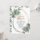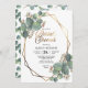 Voici une belle invitation à la douche nuptiale avec cadre d'or géométrique eucalyptus