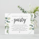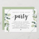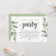Carte d'invitation thématique Eucalyptus et verdure rustique moderne, écriture noire (avec titre de carte : Célébration de bonheur éternel). Elle est parfaite pour votre réception de mariage intime / fête de célébration post-mariage. Ajoutez vos détails dans une police / lettrage noir assorti.
