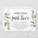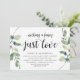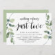 Carton d'invitation thématique Eucalyptus et verdure rustique moderne, écriture noire (avec titre sur la carte : Rien de fantaisiste, juste de l'amour). Il est parfait pour votre réception de mariage intime / fête de célébration post-mariage. Ajoutez vos détails dans la même police / lettrage noir.