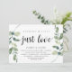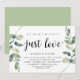 Carton d'invitation thématique Eucalyptus et verdure rustique moderne, écriture noire (avec titre sur la carte: Rien de fantaisiste, juste de l'amour). Il est parfait pour votre réception de mariage intime / fête de célébration après le mariage. Ajoutez vos détails dans la même police / lettrage noir.
