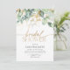 Un eucalyptus moderne et doré élégante douche nuptiale invitation pour votre douche nuptiale, avec la végétation botanique d'eucalyptus et des détails faux or.