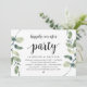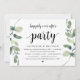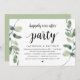 Carton d'invitation thématique Eucalyptus Rustique Moderne, écriture noire (avec titre sur la carte: fête pour toujours heureux). Il est parfait pour votre réception de mariage en fuite / fête de célébration post-mariage. Ajoutez vos détails dans la même police / lettrage noir.