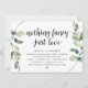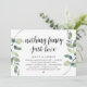 Carton d'invitation thématique Eucalyptus Rustique Moderne, écriture noire (avec titre de carte : Rien de fantaisiste, juste de l'amour). Il est parfait pour votre réception de mariage en fuite / fête de célébration post-mariage. Ajoutez vos détails dans une police / lettrage noir assorti.