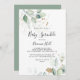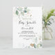 Cette invitation à l'eucalyptus calligraphie or pour bébé sprinkle est parfaite pour un baby shower rustique. Ce design artistique présente une aquarelle dessinée à la main, de l'or et du feuillage vert, une beauté naturelle inspirante.