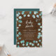Cette invitation à baby shower rustique présente des feuilles eucalyptus avec les mots "baby shower" dans le script tendance tout contre un arrière - plan en bois marron sur l'avant et une couleur vert foncé turquoise sur l'arrière. Personnalisez-le en remplaçant le texte de l'espace réservé. Pour plus d'options comme changer la police, sa taille, l'espacement entre les lettres et pour développer ou contracter du texte courbe cliquez sur le bouton "Personnaliser". *Veuillez noter que le filigrane Zazzle qui apparaît dans l'aperçu du zoom n'apparaîtra PAS sur le produit imprimé final. © Bois de rose et agrumes