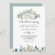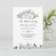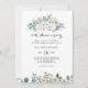 Cette invitation d'anniversaire de mariage de 50 ans avec verdure d'eucalyptus est parfaite pour une célébration d'anniversaire de destination. Le design présente des roses étincelantes illustrées de pourpre, blanc, bleu et rose nichées dans un beau bouquet de feuilles vertes d'eucalyptus.