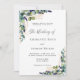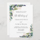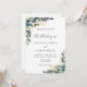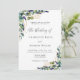 Un arrière - plan blanc décoré de verdure d'eucalyptus et de feuillage doré. Personnalisez et ajoutez vos noms et les détails du mariage.