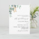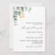 Un arrière - plan blanc chic. Décoré avec des feuilles d'eucalyptus couleur verte, des sprigs, de la verdure et un faux sprig d'or. Personnalisez et ajoutez vos noms et les détails du mariage. Lettres noires. Dos : vert sauge couleur arrière - plan.