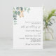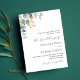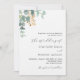 Un arrière - plan blanc chic. Décoré avec des feuilles d'eucalyptus couleur verte, des sprigs, de la verdure et un faux sprig d'or. Personnalisez et ajoutez vos noms et les détails du mariage. Lettres noires. Dos : vert sauge couleur arrière - plan.
