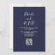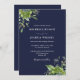 Cette élégante faire-part de mariage botanique bleu marine à eucalyptus peut être personnalisée avec vos informations dans la typographie chic avec votre site mariage code QR au verso. Conçu par Thisisnotme©