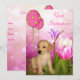 Invitation Fille Fête d'anniversaire Fleurs roses et lilas, chiot Labrador avec ballons roses et jaunes. Fond Bramble Blossom 9