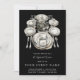 Une invitation moderne et sophistiquée à un dîner formel présentant un cadre de table de dîner formel ; blanc sur noir.