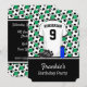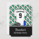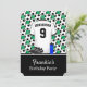 Une invitation sympa à un événement sur le thème du football comme un anniversaire ou une soirée pyjama. Cette invitation de football de style moderne présente un maillot de football à l'avant avec un nom et un numéro personnalisables, une paire de crampons de football et une bouteille d'eau, ainsi que les détails de l'événement. Le fond présente des ballons de football noir et blanc sur une toile de fond de terrain de football. Au dos, il y a un modèle pour ajouter vos propres détails d'événement de football. Si vous avez besoin d'une couleur différente de ce design, contactez-nous via la boutique giftsbonanza avant l'achat pour en discuter.