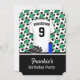 Une invitation sympa pour un événement sur le thème du football comme un anniversaire ou une soirée pyjama. Cette invitation de football de style moderne présente un maillot de football sur le devant avec un nom et un numéro personnalisables, une paire de crampons de football et une bouteille d'eau, ainsi que les détails de l'événement. Le fond présente des ballons de football noir et blanc sur un arrière-plan de terrain de football. Au dos, il y a un modèle pour ajouter vos propres détails d'événement de football. Si vous avez besoin d'une couleur différente de ce design, contactez-nous via la boutique giftsbonanza avant l'achat pour en discuter.