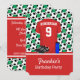 Une invitation sympa à un événement sur le thème du football comme un anniversaire ou une soirée pyjama. Cette invitation de football de style moderne présente un maillot de football à l'avant avec un nom et un numéro personnalisables, une paire de crampons de football et une bouteille d'eau, ainsi que les détails de l'événement. Le fond présente des ballons de football noir et blanc sur un arrière-plan de terrain de football. Au dos, il y a un modèle pour ajouter vos propres détails d'événement de football. Si vous avez besoin d'une couleur différente de ce design, contactez-nous via la boutique giftsbonanza avant l'achat pour en discuter.