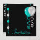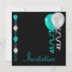 Événement Spécial Anniversaire, Célébration, Invitation Officielle. Bleu vert Turquoise, Streamers blanc argenté et Ballons sur noir. RSVP correspondant disponible sur demande par courriel. Merci aux Doodles de charme pour les images bonus.