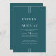 This simple art deco double sided wedding invitation from the Everly Collection features a deep teal background, refined parisian typography, and delicate white line accents. It's modern, minimalist, and perfect for retro-inspired weddings.