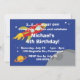 Cette invitation de fête d'anniversaire d'amusement comporte un vol de vaisseau spatial de fusée par quelques planètes dans l'espace extra-atmosphérique. Complètement personnalisable.
