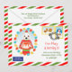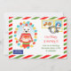 Brillante invitation de fête d'anniversaire pour tous les enfants qui sont nés en décembre! Cette invitation ressemble à une enveloppe estampillée et prête-à-recevoir en bordures de bandes vertes et rouges. Il doit s'agir d'un courrier aérien prioritaire parce que quelqu'un a une fête d'anniversaire, n'est-ce pas ? La correspondance personnelle n'a jamais été aussi festive ! Le gâteau d’anniversaire est prêt et comme c’est Noël, un ours polaire est honoré de le livrer directement du pôle Nord. Cette enveloppe sur le thème de Noël contient un timbre-poste qui indique HAPPY BANTHDAY et le poste a des cadeaux de Noël et un globe de neige. Tout le texte est facilement personnalisable. Veuillez noter qu'une partie du texte est placée à l'arrière de cette invitation pour un meilleur aperçu.