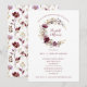Exquisite Burgundy Botanical and Floral Circular Garland Wedding Invitation Design.