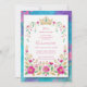 Exquisite Colorful Spanish Mexican Inspired Floral Border Embroidery Style Quinceañera Invitation Cards with Back Photo.