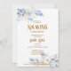 The design features delicate floral branches set against a background of soft blue and faux gold shades, creating a serene and inviting atmosphere. Each bloom is intricately detailed, adding a sense of beauty and grace to the invitation. The combination of blue and faux gold hues evokes feelings of elegance and warmth, setting the perfect tone for this special celebration.