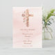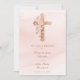 This design features an exquisite and delicate composition with a Christian cross enhanced by a glitter-style effect in soft pastel pink tones, surrounded by gentle floral details that add a romantic and sweet touch. The luminous palette and harmonious aesthetic elevate the elegance of the piece, creating a refined and feminine invitation perfectly suited for a wedding celebrated within the Christian tradition, whether Catholic, Protestant, or another denomination of faith.