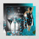 Fabuleux Martini Rose 60th 60 Anniversaire Retro Diva Art déco bleu Turquoise Black Invitation Anniversaire. Changez pour les 50ème, 40ème, 30ème, Customisez avec vos propres détails. RSVP correspondant disponible.