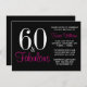 Des invitations fabuleuses et fabuleuses modernes pour 60 ans. Montré en noir et rose fuchsia. Parfait pour la célébration du 60e anniversaire d'une femme ! Customisez facilement avec vos informations de fête.