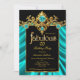 Invitation Fabuleux Anniversaire Turquoise Bleu Silk Gold Gem