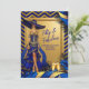 Invitation Fabulous Birthday Glamor Woman Blue Gold Feathers