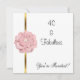 Invitation anniversaire événement célébration fête blanche avec garniture dorée et fleur de perle rose et blanche, fabuleux à 40 ans. Personnalisez avec vos détails.