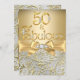 Invitation de fête d'anniversaire des 50 ans fabuleuse. Dessin élégant de nœud diamanté or et de volutes florales. Veuillez noter : Toutes les images plates ! Elles n'ont pas de véritables bijoux !