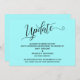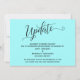 La distinction de cette suite est due à la police de caractères élaborée et tourbillonnante utilisée pour les phrases d'accentuation. Dans le cas où vous auriez besoin de faire savoir à vos invités que votre mariage a été annulé, cette carte offre une option élégante. Dans ce modèle, la police de calligraphie a été utilisée pour créer un graphique représentant le mot " Mise à jour ". Utilisez les champs du modèle pour ajouter vos informations personnelles et faire de ce design le vôtre. La couleur de fond peut être modifiée selon vos préférences. N'hésitez pas à nous contacter pour toute demande spéciale ou pour une aide à la personnalisation. // 98 //