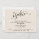La distinction de cette suite est due à la police de caractères élaborée et tourbillonnante utilisée pour les phrases d'accentuation. Dans le cas où vous auriez besoin de faire savoir à vos invités que votre mariage a été reporté, cette carte propose une option élégante et simple. Dans ce modèle, la police de calligraphie a été utilisée pour créer un graphique représentant le mot " Mise à jour ". Utilisez les champs du modèle pour ajouter vos informations personnelles et faire de ce design le vôtre. L'arrière-plan peut être changé en n'importe quelle couleur de votre choix. N'hésitez pas à nous contacter pour toute demande spéciale ou pour une aide à la personnalisation. // 98 //