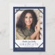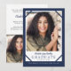 Faire annonce de remise de diplôme bleu marine avec 2 photos est parfait pour le diplômé du lycée ou de l'université qui recherche une carte simple mais tendance. Comprend un espace pour 2 photos, une sur le devant et une sur le dos. Personnalisez le texte pour qu'il dise ce que vous voulez.