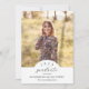 Cette annonce de remise de diplôme photo élégante et stylée comporte une superposition de photo en forme d'arche en blanc, ainsi que des modèles de texte pour une personnalisation simple. Le dos contient un modèle de 2e photo et des modèles de texte pour une personnalisation supplémentaire, par exemple pour partager les projets futurs du diplômé !