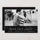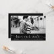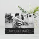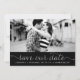 Annonce de photo fantaisiste et féminine de sauvegarde de notre date avec un script délicat blanc sur fond noir. D'autres couleurs et articles similaires sont disponibles.