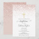 Avec ses paillettes élégantes en or rose et son simple crucifix en or, cette invitation chic de baptême ou de christening peut être personnalisée avec les informations de votre événement spécial. Conçu par Thisisnotme