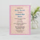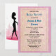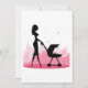 Une invitation de baby shower bleu turquoise. Le fond est un motif délavé de petites empreintes de bébé roses. Le dos représente une maman fashion poussant son landau tout en se promenant en ville. Personnalisez avec tous les détails de votre fête.