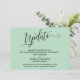 La particularité de cette suite est due à la police de caractères élaborée et tourbillonnante utilisée pour les phrases d'accentuation. Dans le cas où vous auriez besoin d'informer vos invités que votre mariage a été annulé, cette carte offre une option élégante. Dans ce modèle, la police de calligraphie a été utilisée pour créer un graphique représentant le mot " Mise à jour ". Utilisez les champs de modèle pour ajouter vos informations personnelles et personnaliser ce design. L'arrière-plan peut être changé en n'importe quelle couleur de votre choix. N'hésitez pas à nous contacter pour toute demande spéciale ou pour une aide à la personnalisation. // 98 //