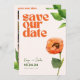 Thème botanique avec motif floral orange. Parfait pour un mariage en plein air ou sur le thème botanique