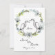 Cette annonce de mariage de oiseau aquatique Save the Date présente deux hérons amoureux. Ils sont entourés d'une belle aquarelle bleue et verte et d'une guirlande de fleurs à l'encre.