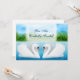 Création d'art original de deux cygnes sur un faire-part personnalisable par la designer Carolyn McFann de Two Purring Cats Studio.