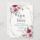 Carte de faire-part de mariage à l'aquarelle peinte à la main avec des bouquets de fleurs rose poudré et burgundy avec feuillage et cadre en feuille d'or numérique. Vous pouvez personnaliser le texte, le style de police, la couleur et la taille au recto et au verso de l'invitation. Cette carte de faire-part de mariage fait partie d'une gamme de papeterie de mariage complète avec de la papeterie assortie.